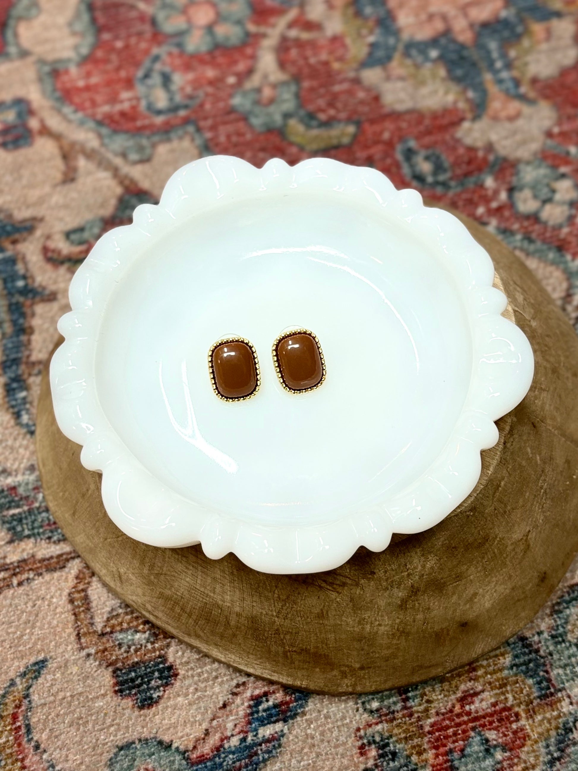 Brown with Gold Rope Detail Stud Earrings